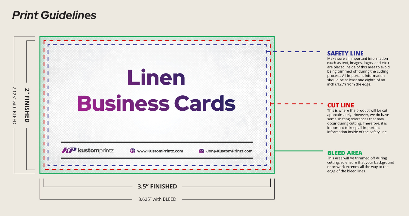 Bleed Area: This area will be trimmed off during cutting, so ensure that your background or artwork extends all the way to the edge of the bleed lines.