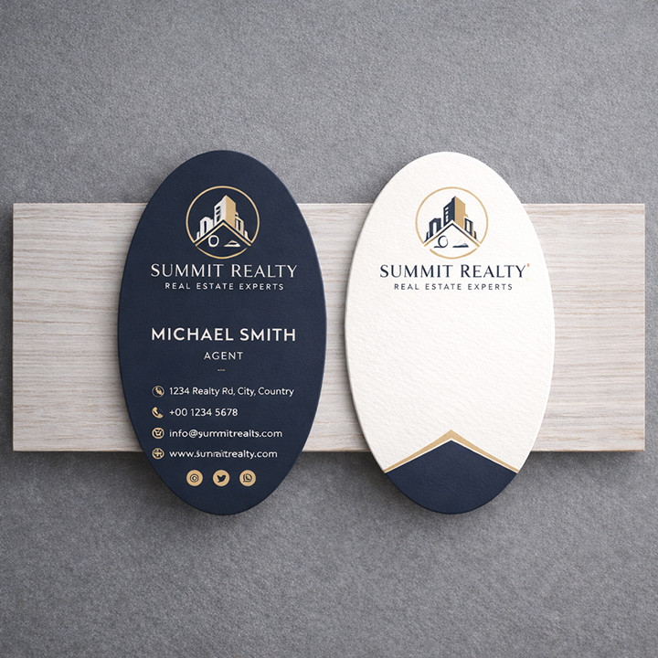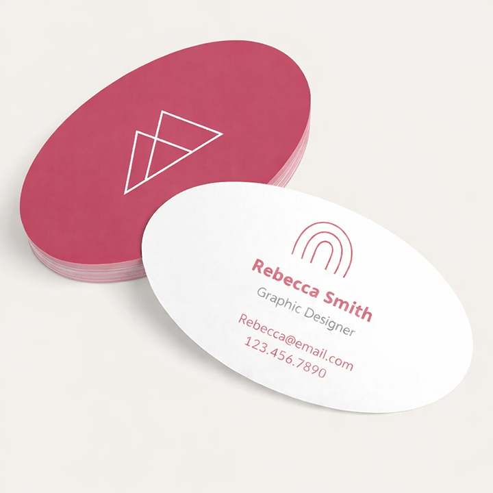 Business cards are more than contact information — with the right design, they showcase your brand and help establish professionalism and credibility. The oval business card size is 2” x 3.5”.