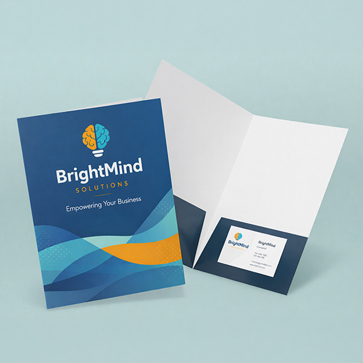 Organize and present your materials with confidence using premium custom printed presentation folders—designed to deliver a polished, professional impression. Printed in vibrant full color on sturdy cardstock, presentation folders provide a branded way to hold documents, proposals, brochures, and marketing collateral.